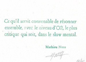 Josiane Benzi, Zéno Bianu, Julien Blaine, Julien Bosc, François Bouillon, Philippe Boutibonnes, Jean de Breyne, Mark Brusse, Gaspart Dancot , Paul Dalmas Alfonsi, Jacky Essirard, Gabriel Garran, Armand Gatti, Jean-Louis Giovannoni, Jean-Marie Gleize, Valérie Guillet, Vincent Guillier, Franck André Jamme, Geneviève Le Coeur, Claude Margat, Luis Mizon , Muriel Modr, Jean-Luc Nancy, Bernard Noël, Valère Novarina, Jean-Luc Parant,